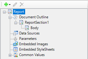 Common Values (общие значения) - обычно содержит системные константы и глобальные переменные (например, номера страниц, текущая дата или общее количество страниц), которые можно использовать в выражениях.