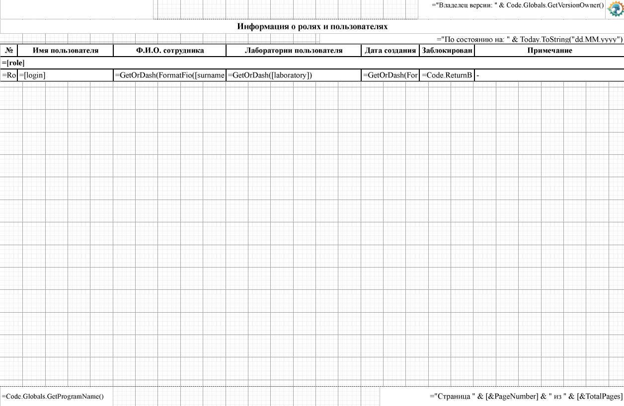 | Нумерация страниц | Номер страницы Globals!PageNumber и всего страниц Globals!TotalPages