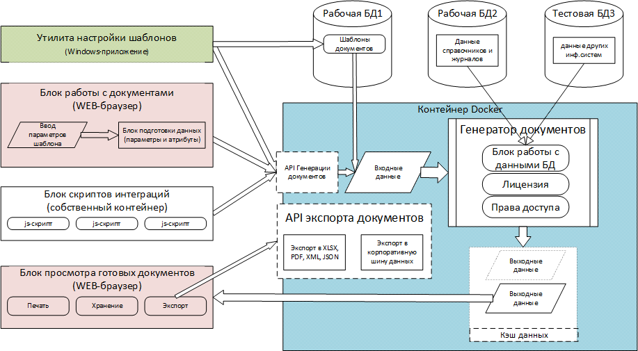 В зависимости от входных настроек шаблона, генератор обращается к различным данным внутри этой БД или использует другую БД, в качестве источника информации для отчетов.