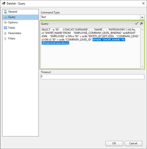 Таким образом, итоговые записи данного запроса будут браться не напрямую из набора данных БД, а после предварительной фильтрации на основе лаборатории, выбранной в первом параметре.