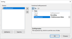 • в правой части окна в строке SortExpression выбрать поле данных, по которому будет проводиться сортировка.