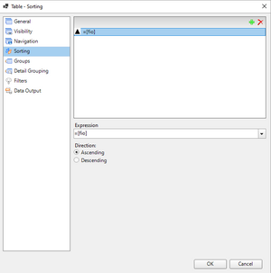 • в поле Expression выберите значение для сортировки данных отчета (например, =[fio]);