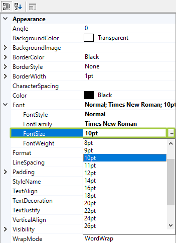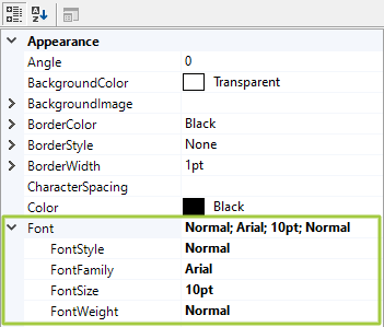 - для изменения свойств шрифта текстового поля в свойствах текстового элемента разворачиваем вкладку