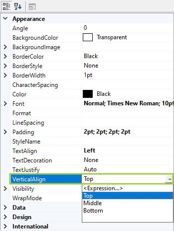 - выражение в текстовом поле может отображать поля из базы данных, вычислять значение или визуально отображать данные;