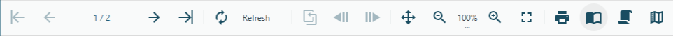 First Page- переход на первую страницу отчета.Previous Page- переход на предыдущую страницу. Номер страницы: переход на указанную страницу отчета.Next Page- переход на следующую страницу.Last Page- переход на последнюю страницу отчета.Refresh- обновление отчета.Back- вернуться к дизайнеру.Backward- переход на страницу, с которой вы открыли отчет до текущей страницы.Forward- переход на страницу, с которой вы открыли текущую страницу.Move tool- навигация по отчету с помощью перетаскивания вверх или вниз.Zoom Support- изменяет масштаб области проектирования с помощью кнопок увеличения+и уменьшения-или сочетаний клавиш[Ctrl] + [+]для увеличения и[Ctrl] + [-]для уменьшения.Toggle Fullscreen- полноэкранный режим.Print- вывод отчета на печать.Single Page- отображается одна страница отчета за раз.Continuous- отображаются все страницы отчета друг под другом.Galley- отображаются отчеты RDLX без автоматических разрывов страниц, данные отображаются на одной странице с возможностью прокрутки.
