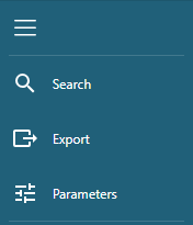 Search- открывает панель для поиска любого слова или фразы.Export- открывает панель экспорта отчета в различные форматы (pdf, xlsx, xls, docx, tiff, mht, csv, json, xml).Parameters- открывает панель выбора параметров, доступных для данного шаблона отчета.