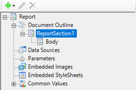 *в разделе «дерева» (структуры) отчета <code>Report</code> найти раздел <code>ReportSection1</code> (по умолчанию – название основной секции отчета); | *в разделе «дерева» (структуры) отчета <code>Report</code> найти раздел <code>ReportSection1</code> (по умолчанию – название основной секции отчета); | ||